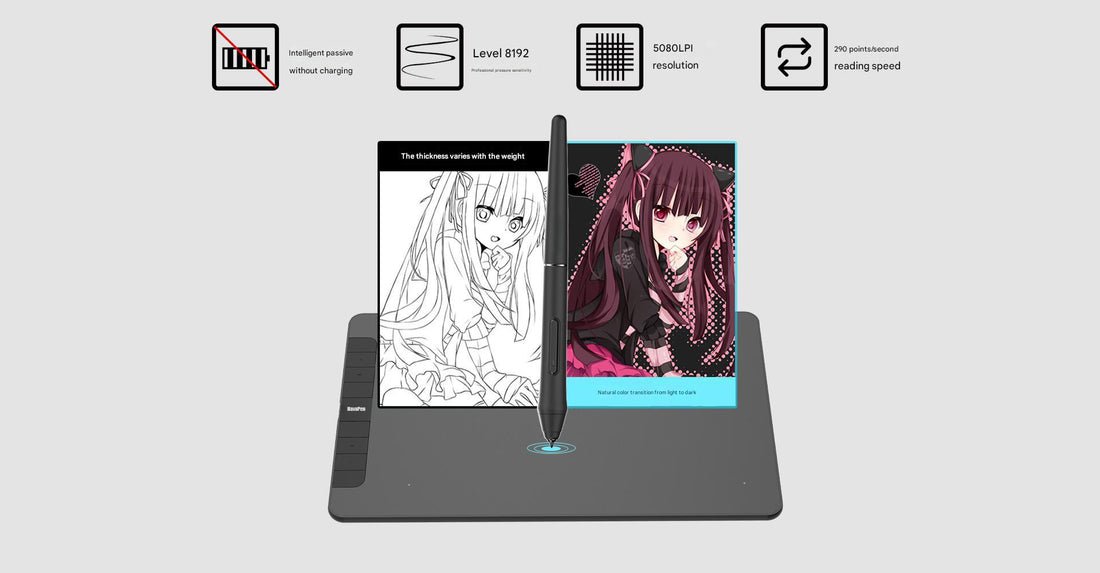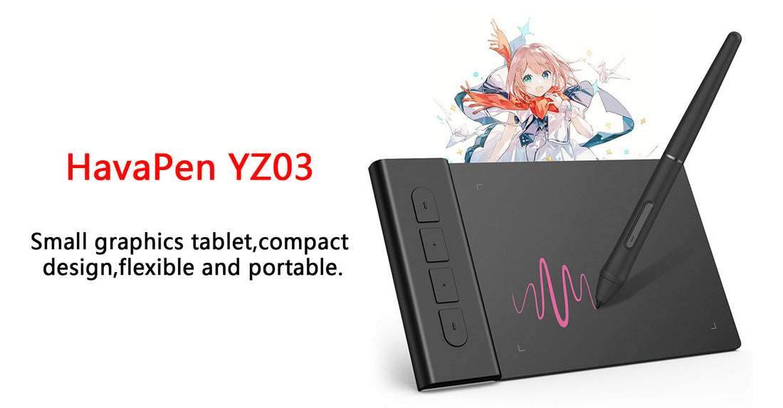 HavaPen YZ960 Graphic Tablet comes with 5 customizable shortcut keys and is compatible with Windows/Mac/Android, Photoshop/SAI/Clip Studio. Suitable for all.